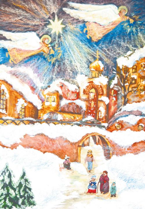 В выставочном зале экспонируется выставка детского творчества «Христос рождается — славите». На снимке: рисунок 13-летней ученицы преподавателя С. Азаренковой (ДШИ-2) Маши Александровой.