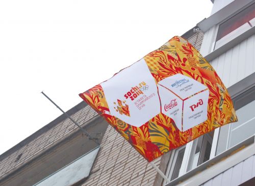 Жители города следят за играми в Сочи, некоторые вывесили олимпийский флаг.